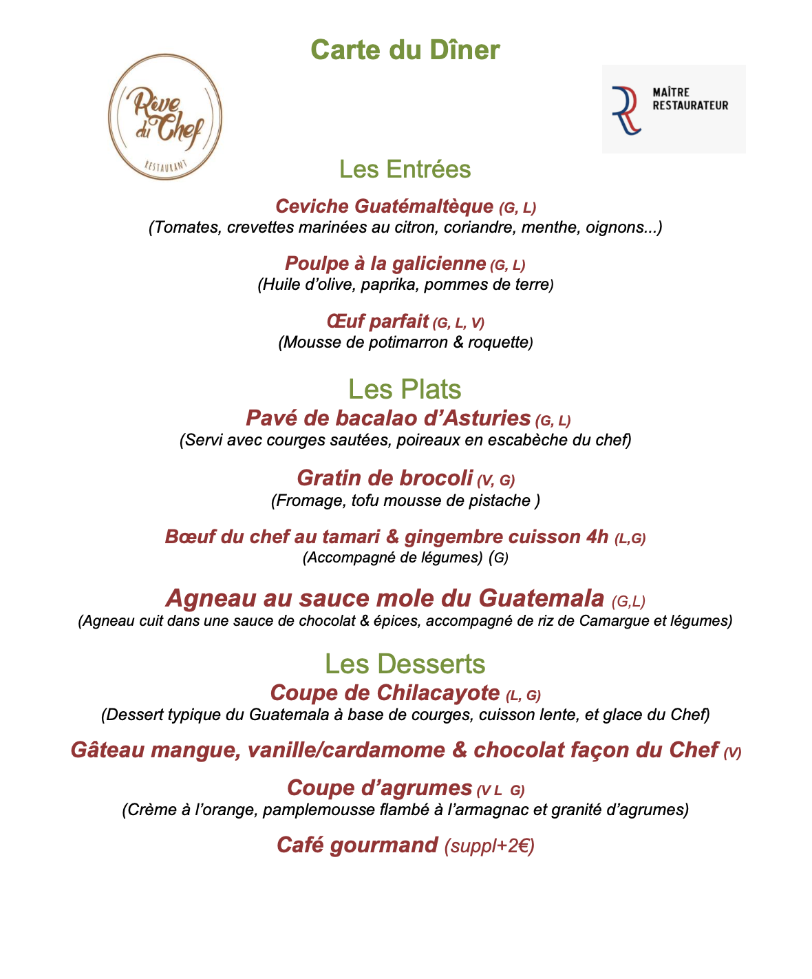 (G,L,V) Sans Gluten, sans produit laitier, végétarien